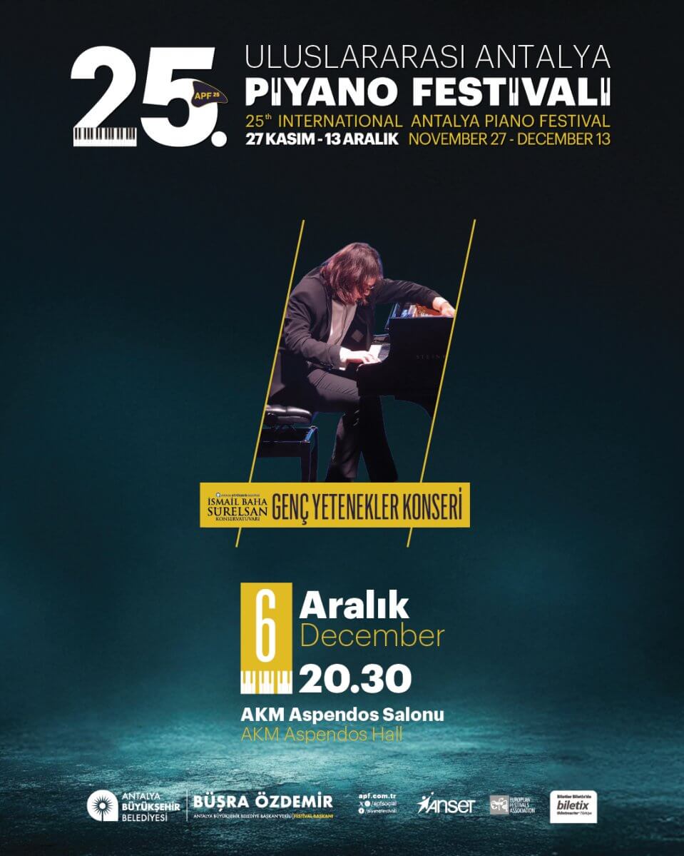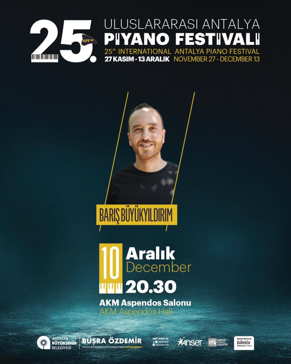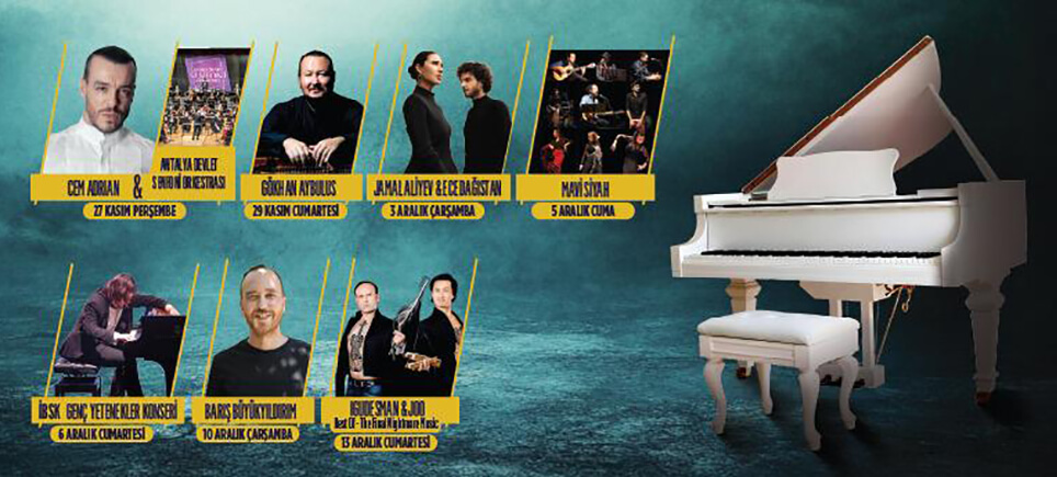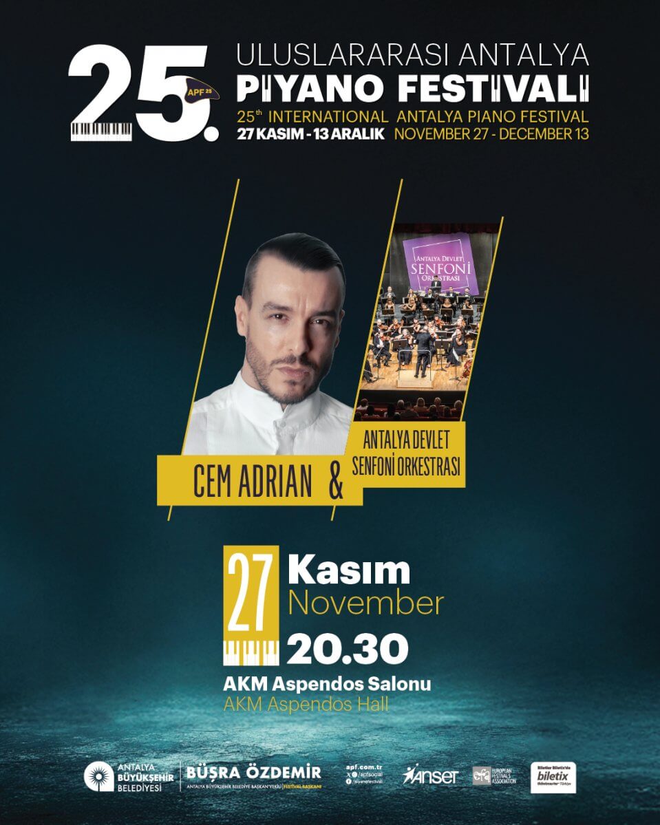 Uluslararası Antalya Piyano Festivali, Antalya Büyükşehir Belediyesi’nin önemli kültür-sanat etkinliklerinden biridir, 25 yıllık bir geçmişe sahip festival bu süre zarfında Antalya’nın sanat hayatına büyük katkılar sağlamıştır. Avrupa Festivaller Birliği (EFA) üyesi olan festival, her yıl yerli ve yabancı ünlü piyano sanatçılarını Antalyalı sanatseverlerle buluşturarak, klasik müzikten flamenkoya kadar geniş bir müzik yelpazesini sunmaktadır. Festival, yalnızca müzikseverlere unutulmaz deneyimler yaşatmakla kalmayıp, aynı zamanda zengin tarihimizin ve kültürel çeşitliliğimizin tanıtımına da önemli bir katkıda bulunmaktadır. Bu yıl 25’incisi gerçekleştirilecek olan festival, Atatürk Kültür Merkezi (AKM) Aspendos ve Perge Salonu’nda düzenlenecek konserler ve etkinliklerle dolu bir program sunmaktadır. Antalya Büyükşehir Belediyesi’nin destekleriyle, müzikseverler, seçkin sanatçılarla buluşmak üzere davet edilmektedir.