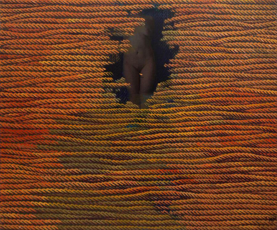1990-1997 yılları arasına tarihlenen sanatçının “Üçüncü Dönemi”ni kıvılcımın ateşlenmeye başladığı yıllar olarak tarif etmek doğru olacaktır. Belki de annesinin terzi olması ve denize olan tutkusunun etkisiyle bilinçaltında yarattığı ip imgesi, önemli bir detay olarak resim yüzeyindeki yerini almaya başlar. Halat ve ipler, antik dönem heykellerinin, objelerinin ve arkeolojik görüntülerin arasında özgün ve özgürce salınmaya başlar. İpler, halatlar bu dönemde kompozisyonların vazgeçilmez elemanı olur
