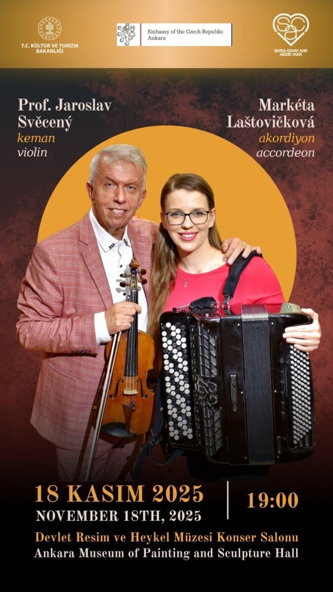 Jaroslav Svěcený’nin ve Markéta Laštovičková’nın,  Astor Piazzolla, Richard Galliano, Gorka Hermosa’nın  eserlerini  seslendireceği bu özel konser 18 Kasım 2025 Salı akşamı saat 19.00’da Resim Heykel Müzesi Konser Salonu’nda gerçekleşecek.