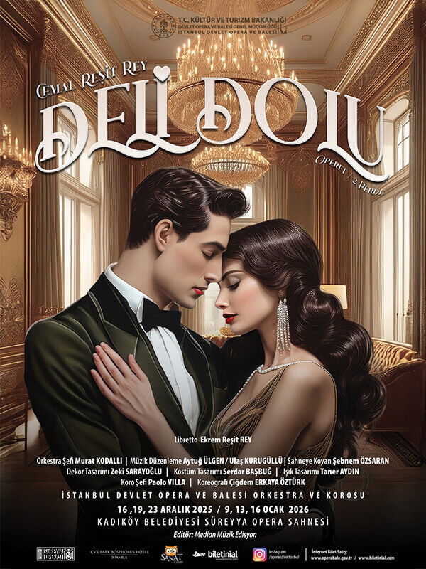 İstanbul Devlet Opera ve Balesi olarak, sanatseverleri ‘Deli Dolu’ opereti ile mizah ve müziğin bu çok keyifli birleşimine davet etmekten büyük bir heyecan duymaktayız. Atatürk Cumhuriyeti’nin yenilikçi ruhunu yansıtan eser, Türk Beşleri’nin önde gelen isimlerinden Cemal Reşit Rey tarafından bestelenmiş olup, Ekrem Reşit Rey’in özgün librettosu ile zenginleşmiştir. Operetin ana fikri, iki yüzlülüğün getirdiği sosyokültürel eleştiriyi mizahi bir dille sunmaktır. Eğlenceli bir hikâye çerçevesinde, karakterler arasındaki samimiyetsizlik ve riyakarlık gibi derin temalar işlenmektedir. Rey kardeşlerin yetenekleriyle şekillenen bu eser, neşeli melodileri ve yaratıcı anlatımıyla izleyicilere unutulmaz anlar yaşatmaya hazırlanmaktadır. Kadıköy Belediyesi Süreyya Operası’nda sergilenecek eser; mizah ile müziğin mükemmel uyumunu sergileyen İstanbul Devlet Opera ve Balesi’nin bu yeni prodüksiyonunu kaçırmamanızı öneririz.