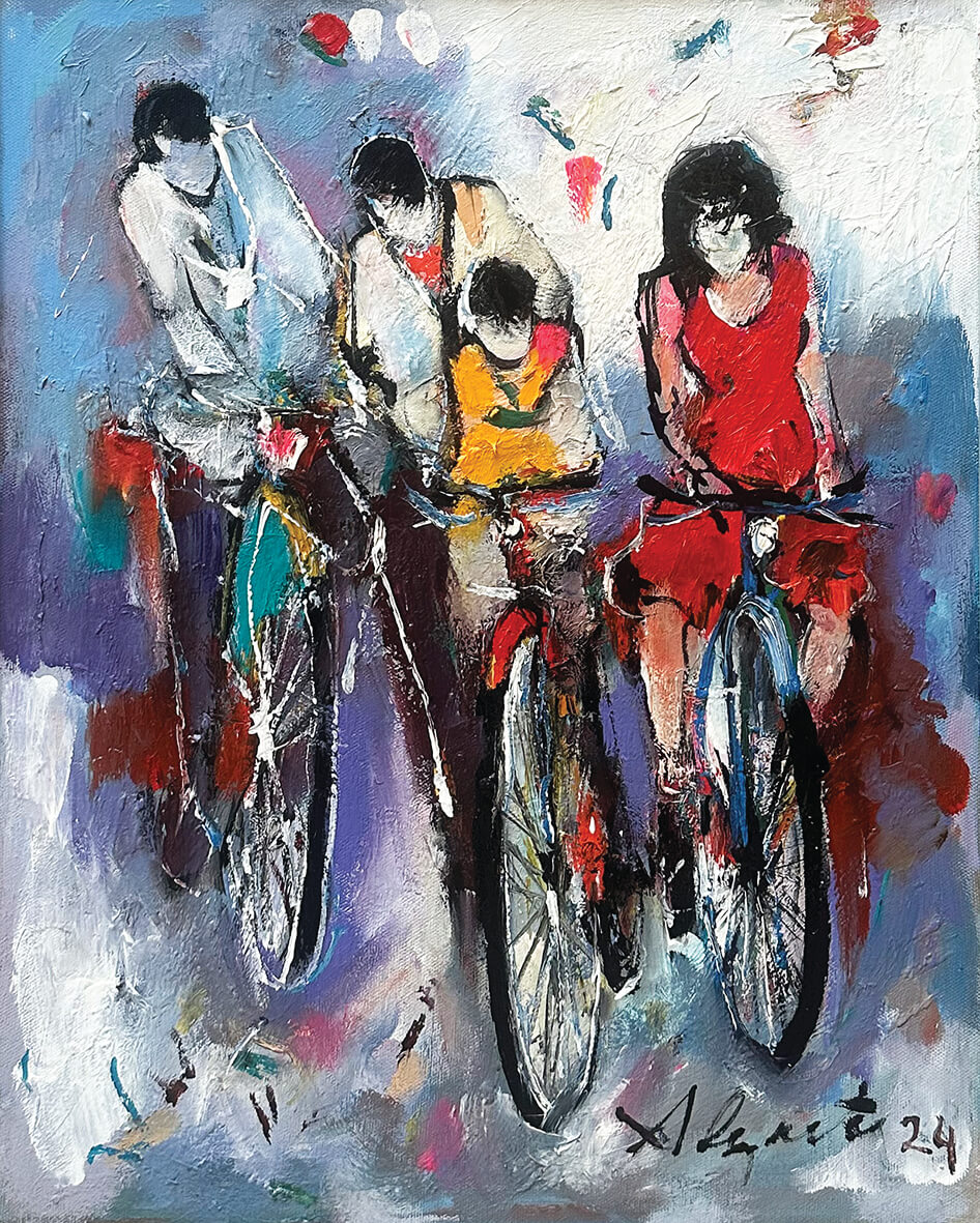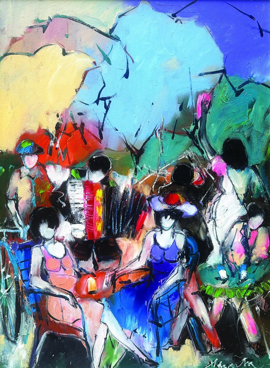 Alp Bartu’nun yağlıboya resimlerini, insan ilişkilerinin bireyselliğini belirtmekten çok onların insancıl ilişkilerine ağırlık vermiş anlamda görmek gerek. İnsanların yüzlerinden çok genel anlatımını ele alan Bartu’nun, onların psikolojik yapısıyla da ilgilenmeyerek her birini bir arada bulunan kimliği belirsiz birer üye, bir öbeğin ya da topluluğun birlikteliğindeki bir varlık olarak gösterdiğini ve bu anlamda sağlanmış olan uyum ve bütünlüğe vardığını görebiliyorsunuz.
