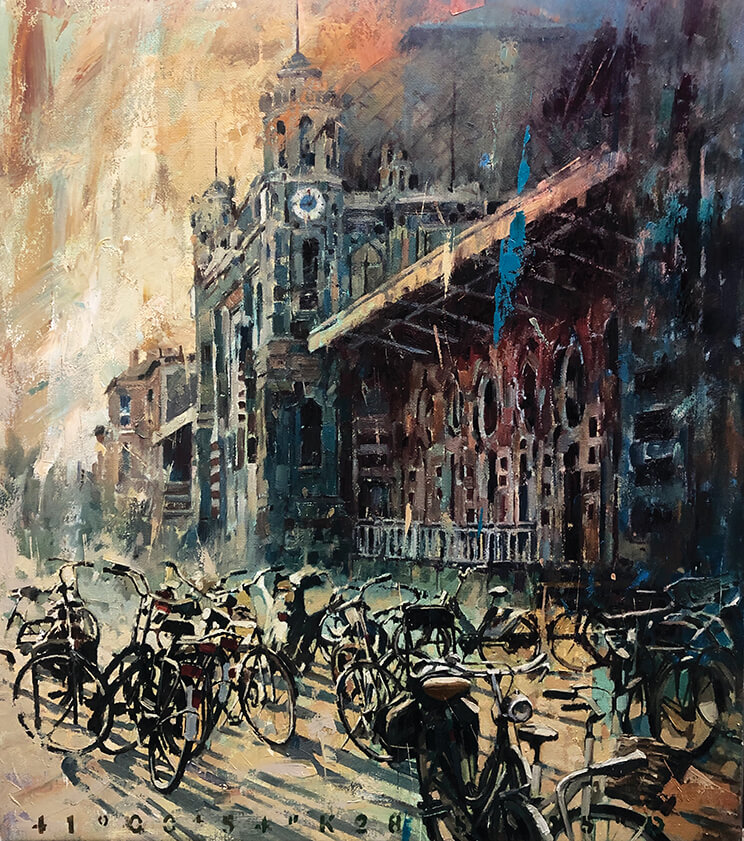 Osman Akça’nın resimlerinde mekân yalnızca bir arka plan değil, hafızanın kendisidir. Sanatçının iki ana serisi olan Güvercinler ve Bisikletler, insanın şehirle kurduğu sessiz, gündelik ama derin ilişkiyi görünür kılar. Bu serilerde zaman yavaşlar; hareket, durağanlığın içinde saklıdır.