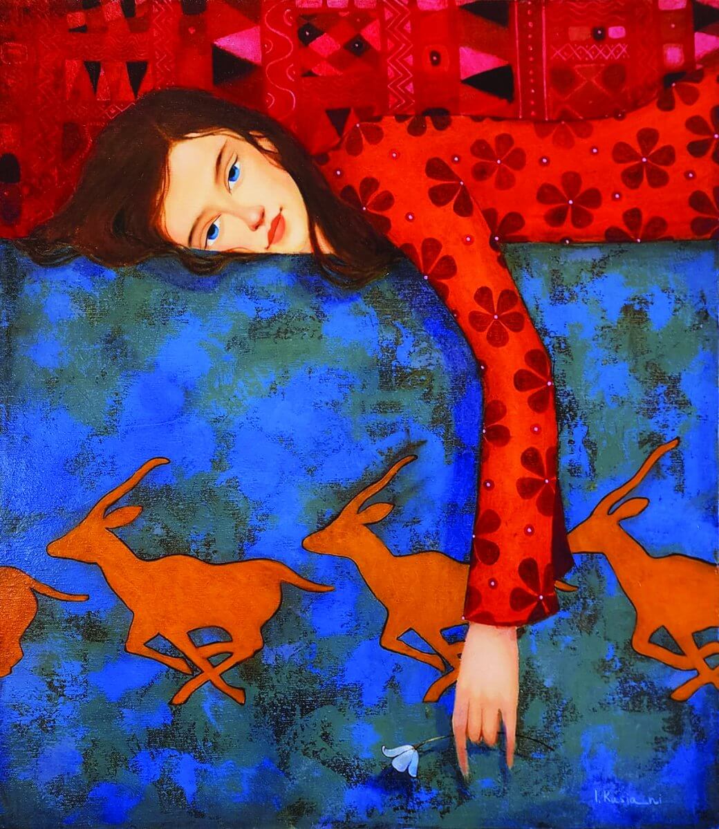 Irma nın resimlerinde genellikle eski Gürcü sanatından ve efsanelerden, mitlerden ve masallardan oldukça sık etkilendiği gözlenmektedir. Irma için resmin temasında insan formunu tasvir etmek çok önemlidir.