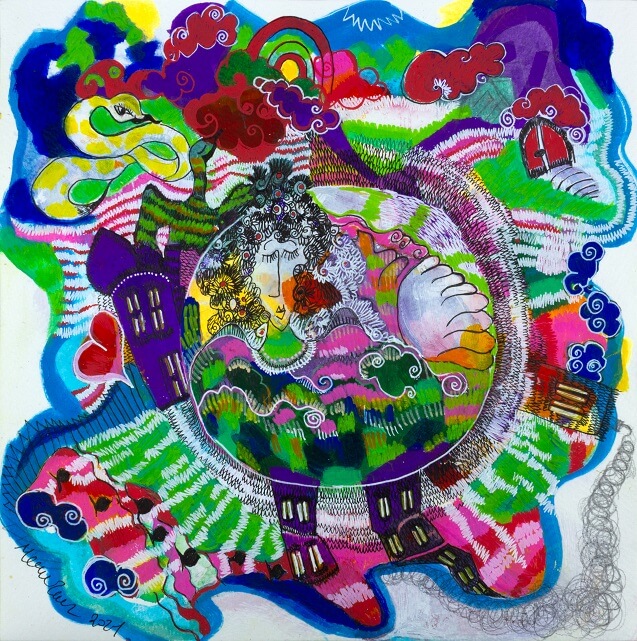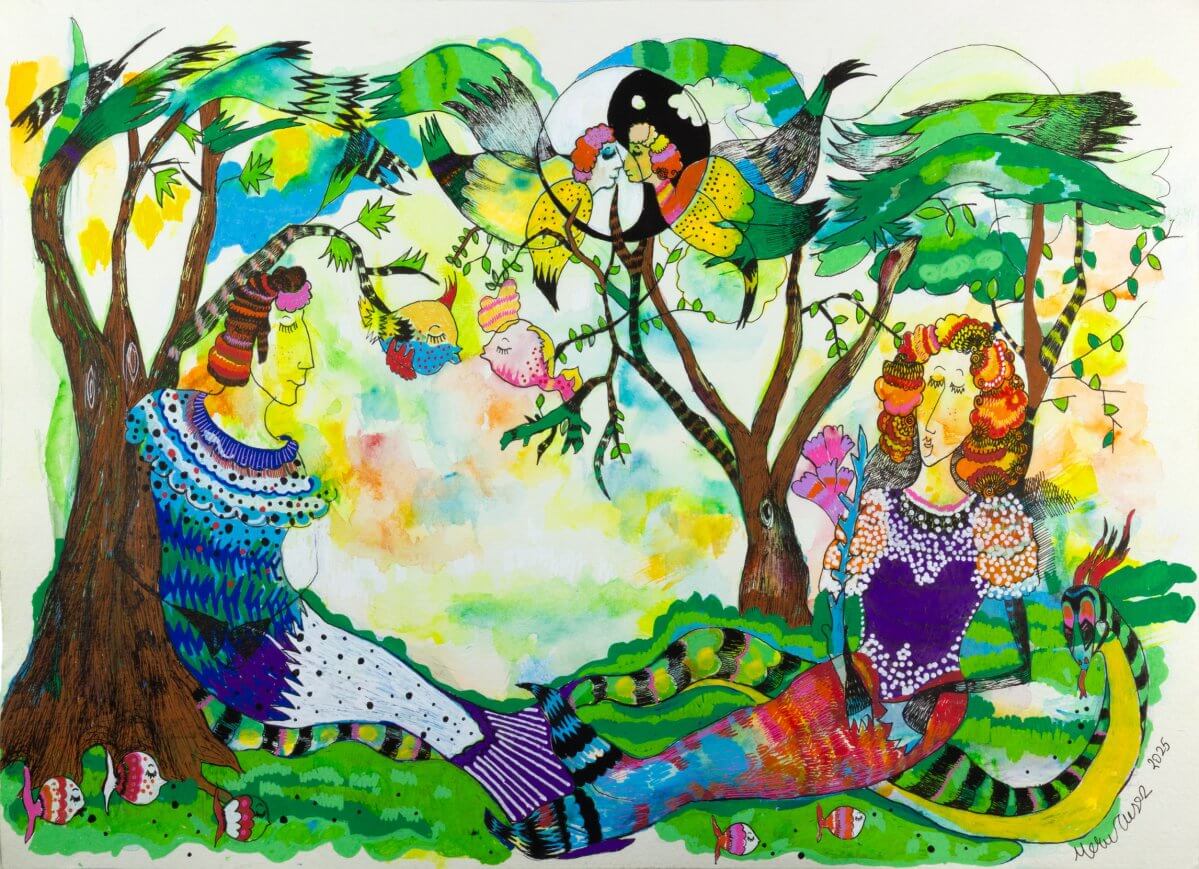 Sergideki işlerin yüzeyindeki neşe ve renkli doku, derinlikteki bulanıklığı inkâr etmez. Tıpkı çuvalın içindeki karmaşanın yaşamı mümkün kılması gibi, akvaryumun dibindeki hareket de yüzeye bir titreşim olarak yansır. “İhtimaller Evreni”, bir kahramanın yolculuğundan ziyade; taşıdığımız yüklerle birlikte ilerleyebilmenin, belirsizlikle yaşamayı öğrenmenin ve ihtimallerin açık kalmasına izin vermenin şiirsel bir ifadesini sunar.