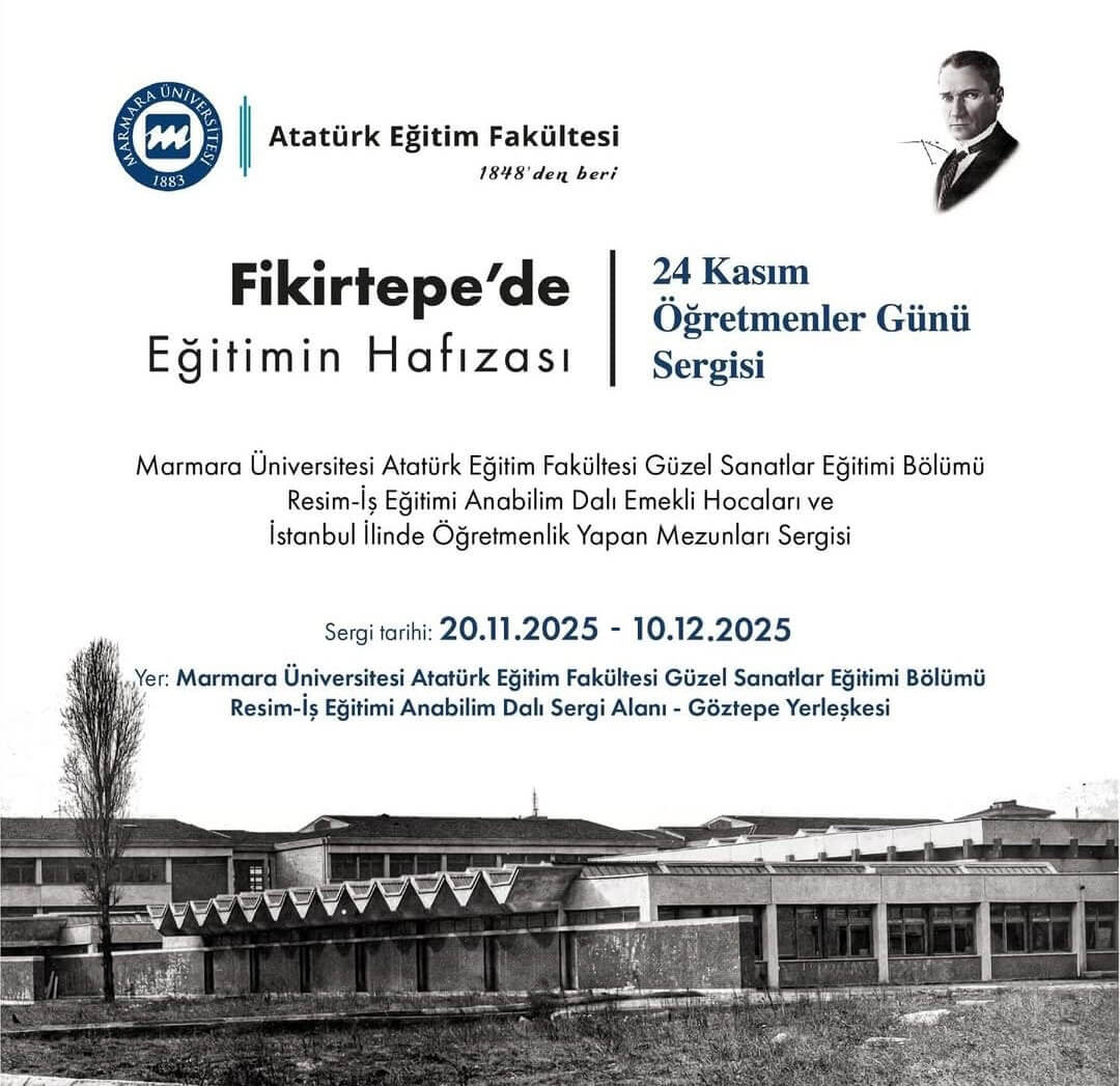 Marmara Üniversitesi Atatürk Eğitim Fakültesi Resim-İş Öğretmenliği Anabilim Dalı tarafından, 24 Kasım Öğretmenler Günü kapsamında düzenlenen “Fikirtepe’de Eğitimin Hafızası” başlıklı sergi, 20 Kasım – 10 Aralık 2025 tarihleri arasında Marmara Üniversitesi Göztepe Yerleşkesi Resim-İş Eğitimi Anabilim Dalı Sergi Alanı’nda gerçekleştirildi. Sergi, emekli akademisyenler ile Resim-İş Öğretmenliği Bölümü mezunu olup İstanbul’da öğretmenlik ve sanat eğitimini aktif olarak sürdüren sanat eğitimcilerinin eserlerinden oluştu ve yoğun bir katılımla izlendi.