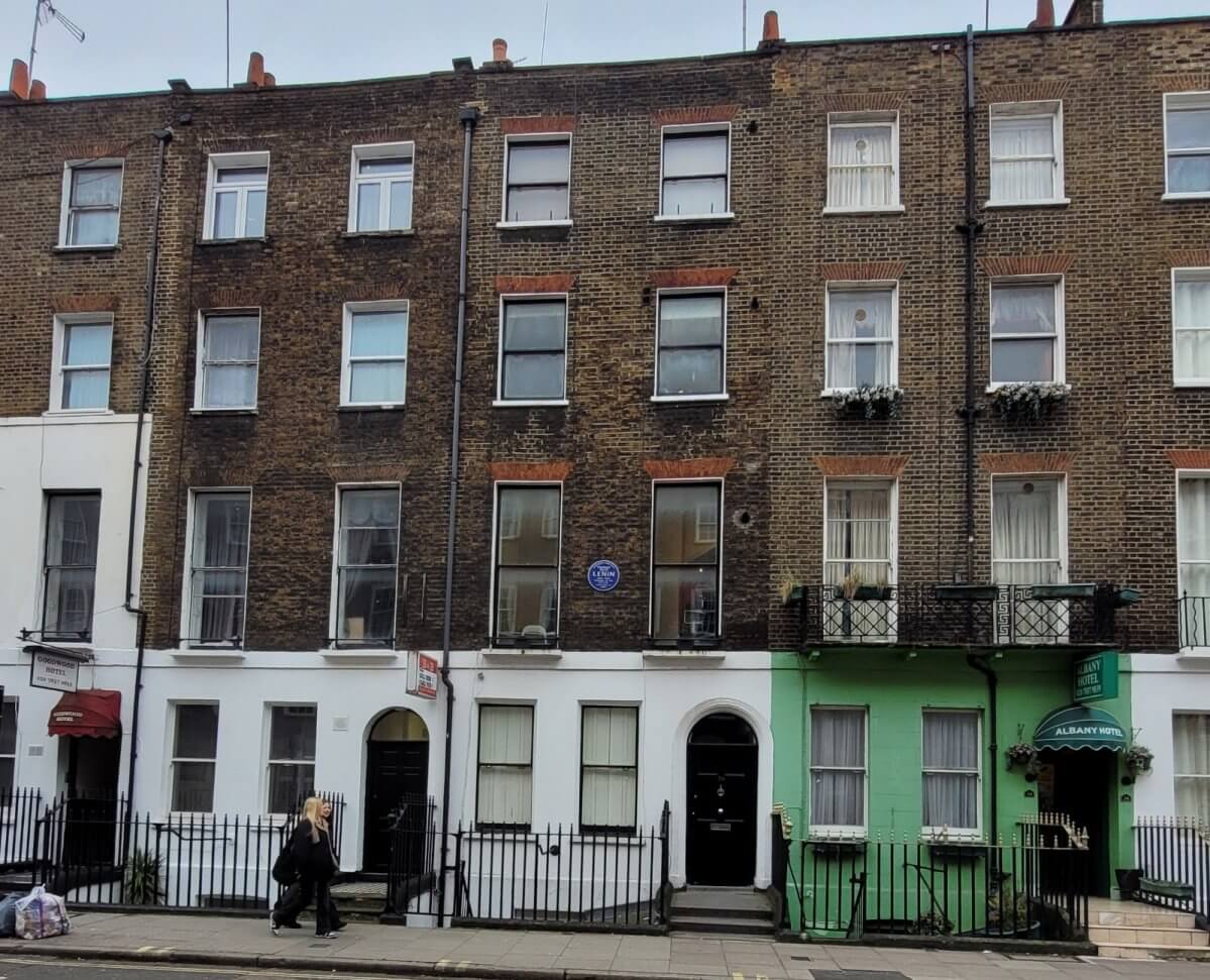 Lenin’in 1908’de kaldığı, Russel Sq yakınında “22 Tavistock Pl” adresinde yer alan dört katlı binanın üzerindeki mavi plakette ise “Vladimir Ilyich LENIN 1870-1924 S.S.C.B.’nin kurucusu 1908’de burada yaşadı” yazıyor.